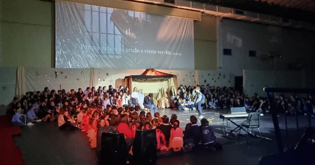 Foi um Sarau inesquecível! A Comunidade Educativa teve a oportunidade de vivenciar a Alegria desta quadra a partir de demonstrações artísticas dos alunos nas Percussões, Dança, Ginástica Artística, Teatro e Coros. Fomos todos “Peregrinos de Natal”… e sentimos que o Deus Menino chega até nós através do “nosso irmão”!